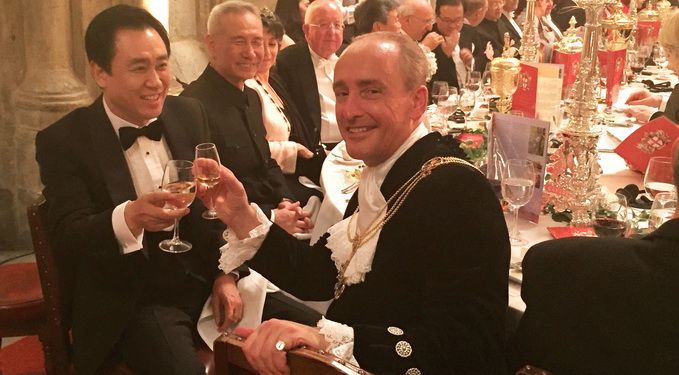 当天晚上,伦敦金融城市长叶雅伦在金融城市政厅为中国国家主席习近平举行隆重仪式和晚宴,董事局主席许家印等中英各界代表受邀参加晚宴。