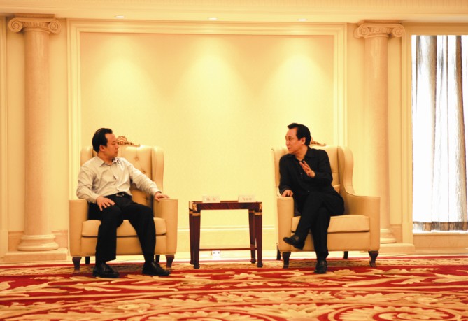集团董事局主席许家印与黑龙江代省长陆昊(左)亲切会晤